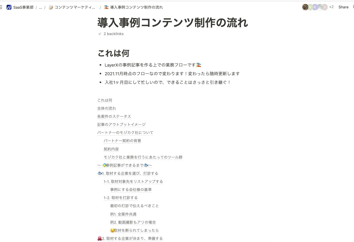 • 導入事例に関しては前述の通り最初から型化をし、Day1からめちゃくちゃ詳細な引き継ぎ資料を作りました。