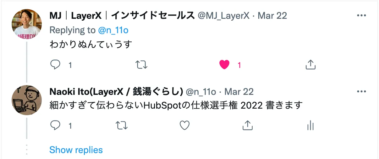 - 導入の経緯や「なんでHubSpot使ってるねん」という点については、事業部長のmakiさん(@35_mki)やInside SalesのMJさん(@MJ_LayerX)が昨年に書いた記事をご覧ください!