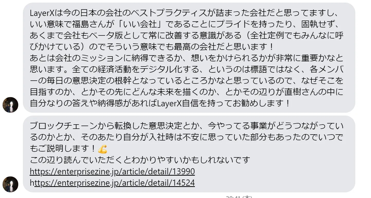 お決まりの採用PRといきたいところですが、まだ入りたての自分の言葉よりも、既にバリバリ活躍している人の言葉のほうが伝わるかなと思いますので、最後に自分の背中を押してくれた元Repro・現LayerX Labs野畑くん(@isseinohata)の熱いメッセージをお借りします。